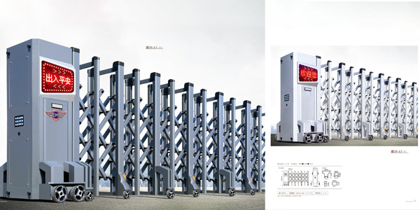 電動伸縮門別名“電動門“”或“電動折疊門”。電動伸縮門主要由門體、驅動器、控制系統構成。伸縮門的門體采用鋁合金及普通方管管材制作,采用平行四邊形原理鉸接,伸縮靈活行程大。自動伸縮門,按“電動”分為普通型(需配功率控制箱,功率部分在控制箱里)機電一體化型(功率部分,及邏輯電路在電裝本體上。此類電裝,性好),一體化型(只是在機電一體化上加了液晶顯示,電子行程,電子力矩,遙控調試等功能),一體化只是對電裝本體的新,一體化的發展是總線型的一體化,及功率部件的新,變頻器的使用,及變頻型。 電動伸縮門適用于工礦廠房、車間、倉庫、機房、車庫等場為活動圍墻,大大擴大了電動伸縮門的應用范圍。